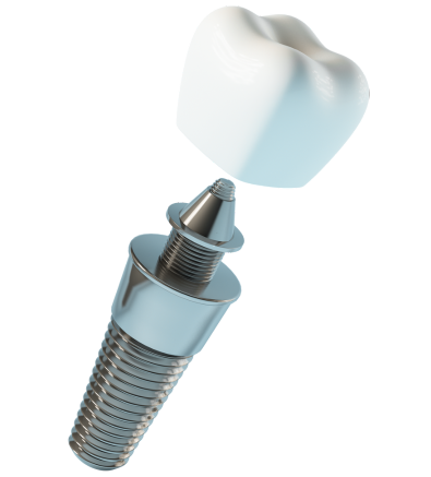 O implante dentário é, basicamente, uma peça de titânio que é fixada no maxilar ou mandíbula, abaixo da gengiva para dar apoio à colocação do dente.